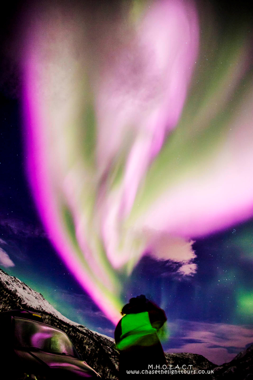 In nearby Kvaløya, aurora tour guide Marianne Bergli witnessed a surge of pink that was, if anything, even more dramatic: