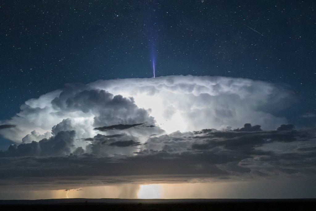 Above: A blue jet emerges from a thunderhead in Big Bend National Park, photographed by Matthew Griffiths in Marfa, Texas: more.