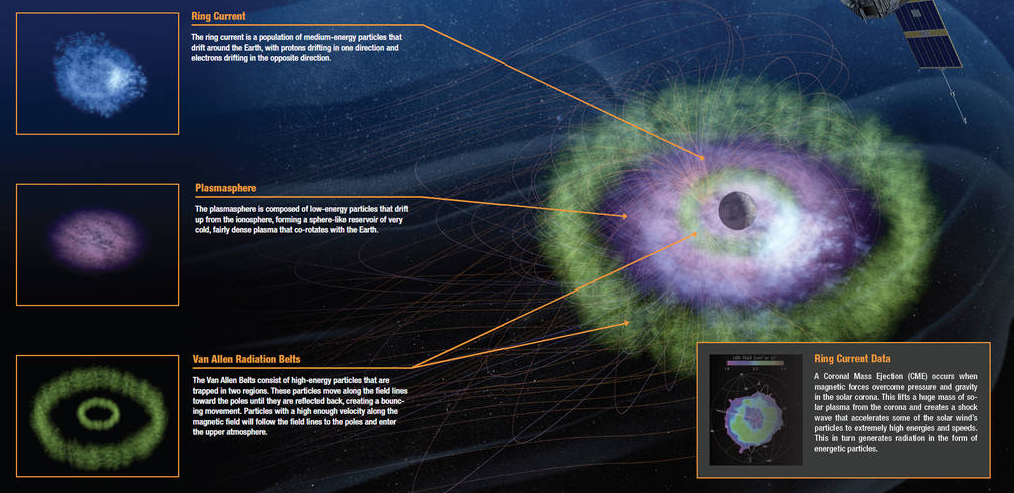 Most people don’t realize that Earth has rings. Unlike Saturn’s rings, which are vast disks of glittering ice, Earth’s rings are invisible to the naked eye. They are made of electricity–a donut-shaped circuit carrying millions of amps around our planet. The ring current skims the orbits of geosynchronous satellites and plays a huge role in determining the severity of geomagnetic storms.