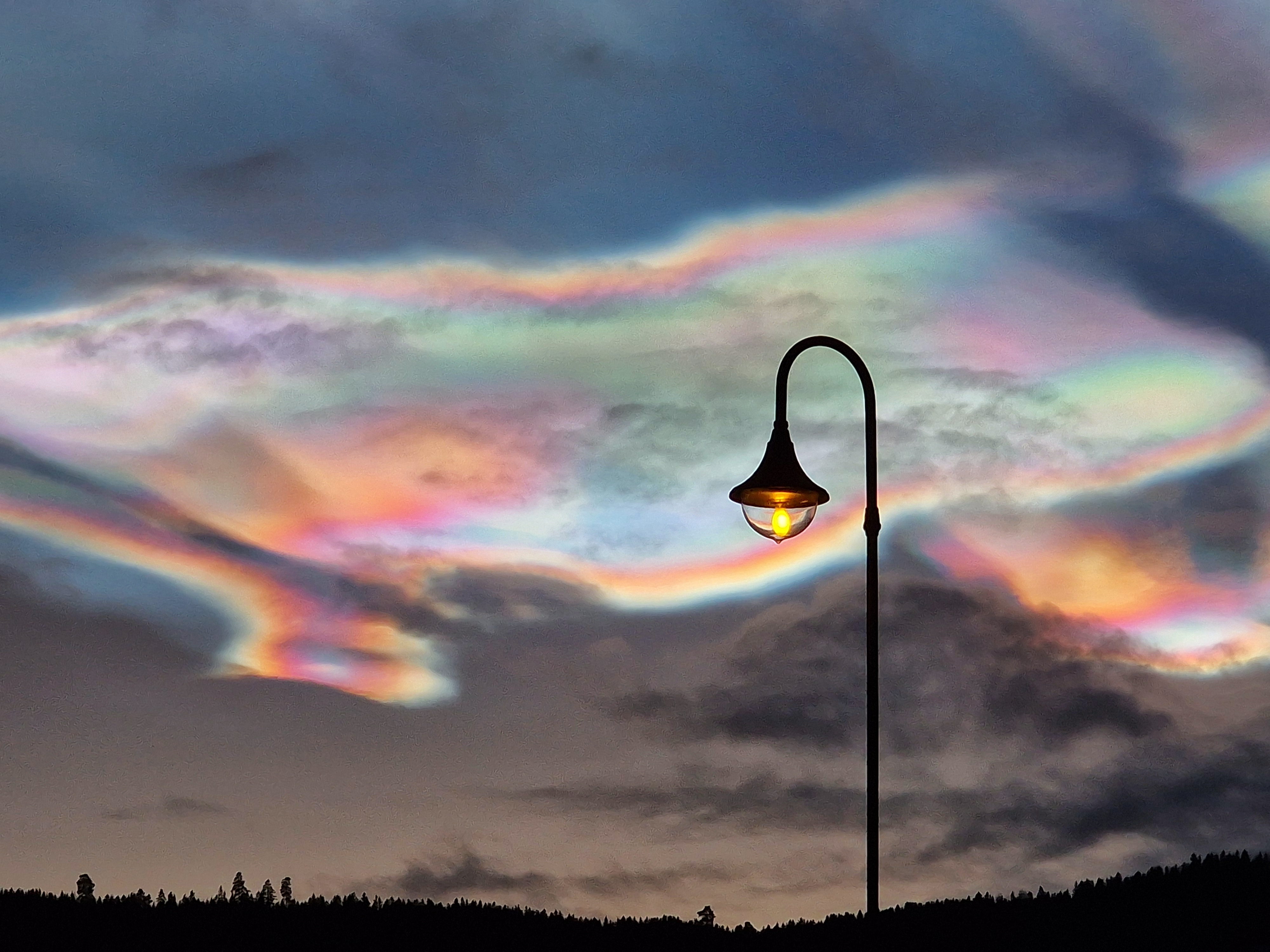 Dec. 17, 2023: (Spaceweather.com) A cold wave just swept through the Arctic stratosphere. Really cold. We know because on Dec. 17th these colorful clouds appeared over Sweden: Above: A “PSC selfie” by Lights over Lapland driver Dimitrios Roukounakis “It’s that magical time of year again,” says Chad Blakley, owner of the aurora tour guide service … Continue reading An Outbreak of Polar Stratospheric Clouds