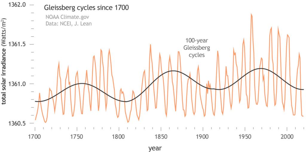 You’ve probably heard of the 11-year sunspot cycle. The Gleissberg Cycle is a slower modulation, which suppresses sunspot numbers every 80 to 100 years. For the past ~15 years, the sun has been near a low point in this cycle, but this is about to change.