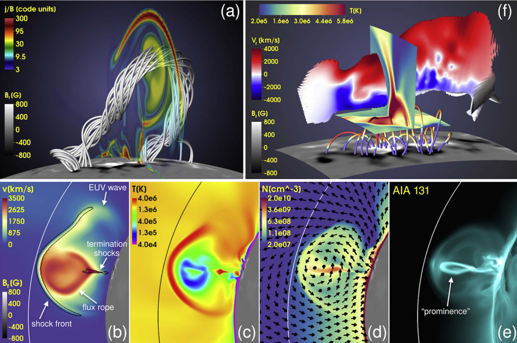 Tibor Török of Predictive Science, Inc., is one of many researchers still studying the Bastille Event decades later. “The event took place close to disk center, so we had a great view of the action,” he says. Török recently applied a modern magnetohydrodynamic (MHD) computer model to some of the data, and found that 1033 ergs of magnetic energy were released in the explosion–about the same as a thousand billion WWII atomic bombs.
